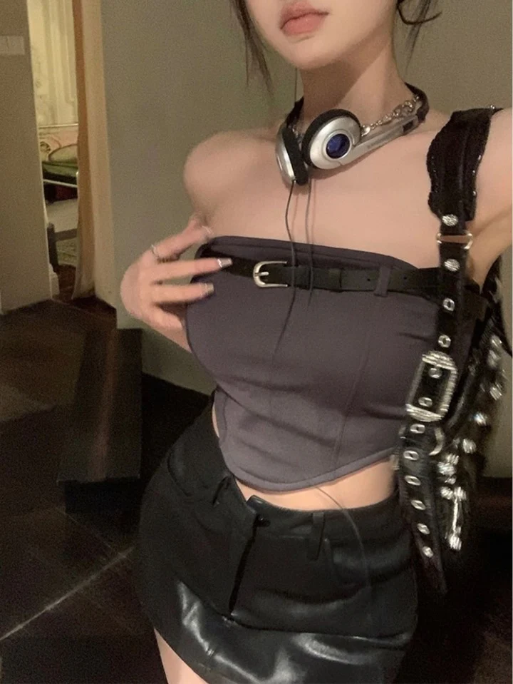 -70%Padded Stretch Cami Belted Top—